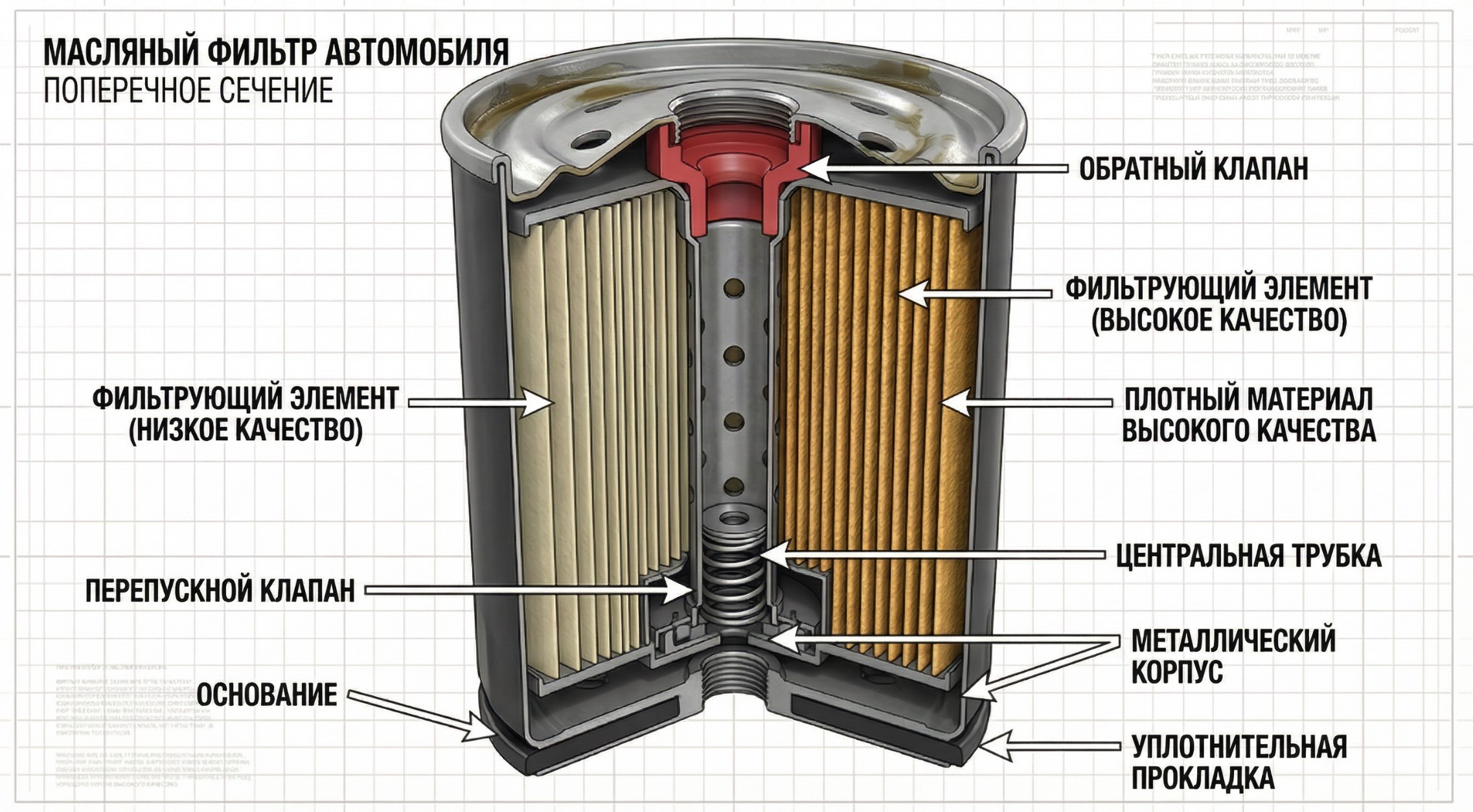 В фильтре есть обратный клапан. Его задача — не давать маслу стекать в картер, когда мотор заглушен. У дешевых аналогов этот клапан из "дубовой" резины. Он не держит.